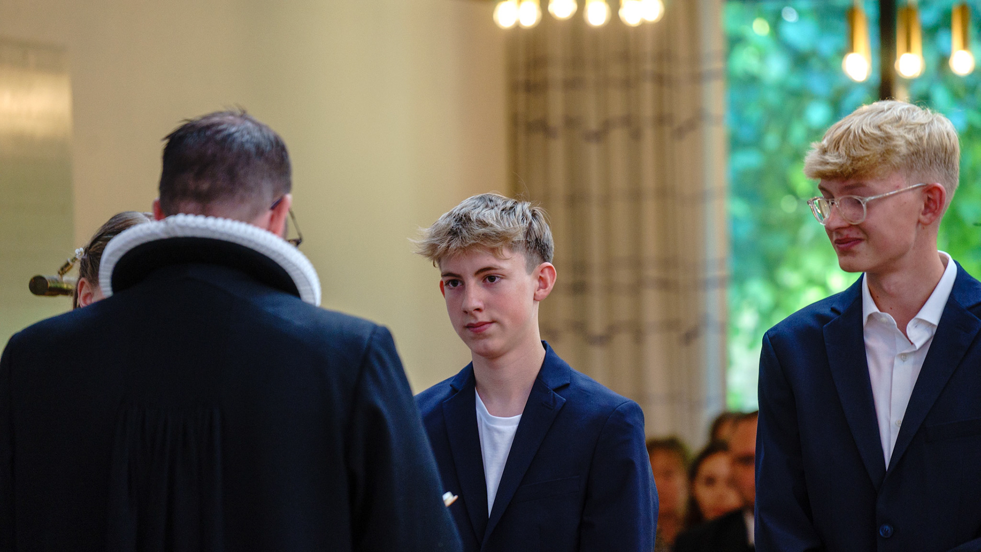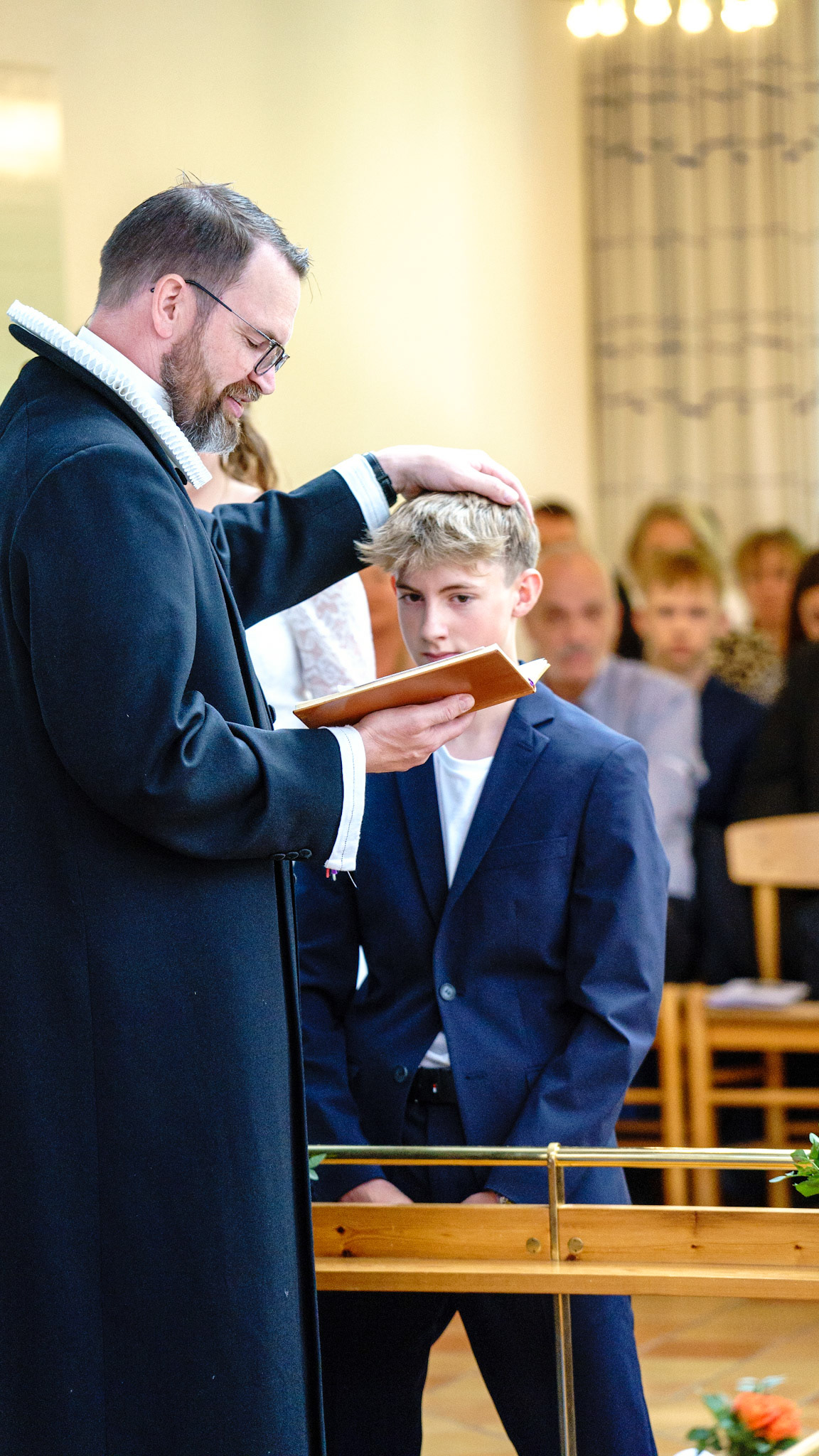 A happy candidate for confirmation, my nephew, captured from a distance in the church in Herlev